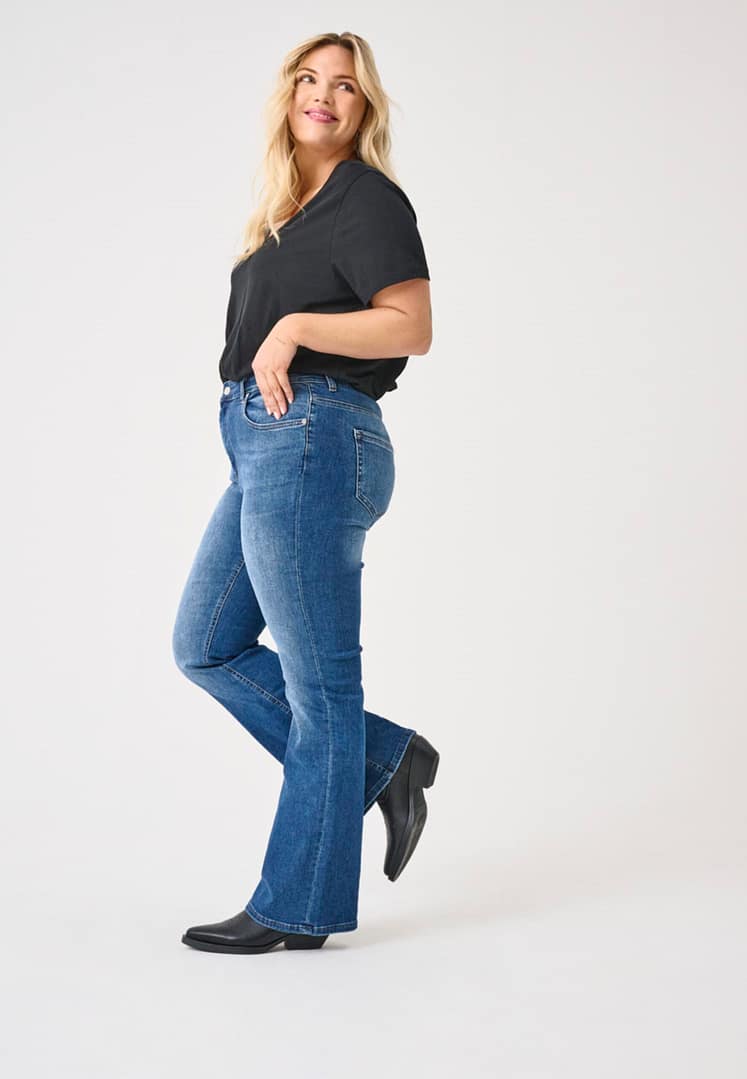 – Pasvorm : Deze flared fit jeans omhelst je heupen en dijen en loopt vanaf de knie wijder uit