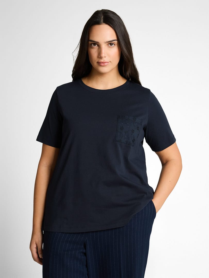 Boxy Fit T-shirt met bloemenborduursels op de opgestikte borstzak. Gemaakt van single jersey katoen.