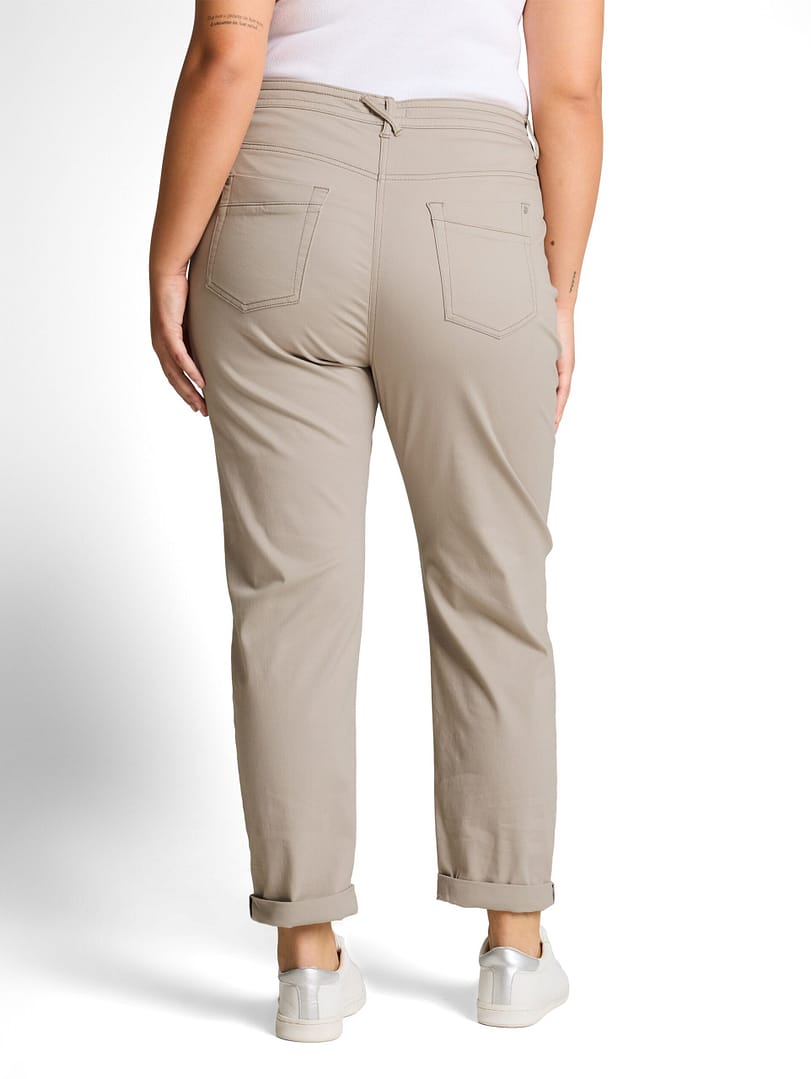 Slim fit broek met trekkoord in de tailleband. In five pocket-stijl met steekzakken aan de zijkant en opgestikte zakken aan de achterkant.