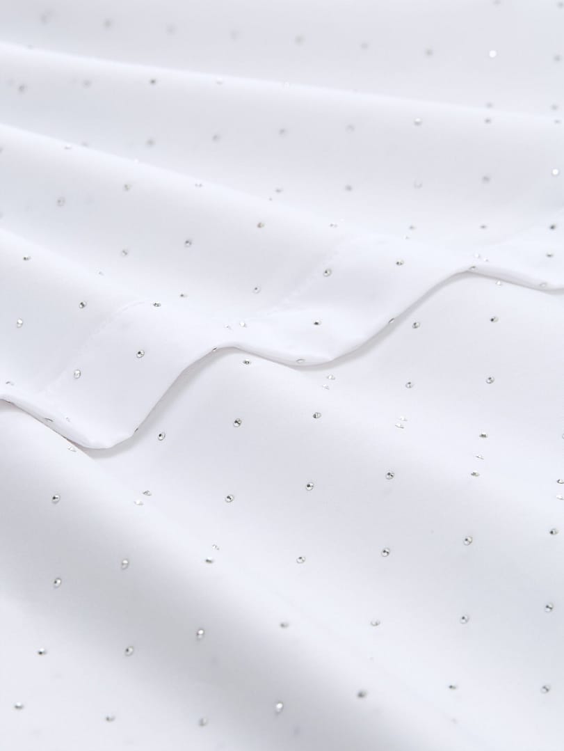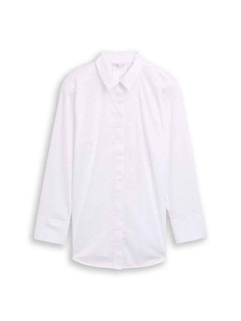 Losvallende overhemdblouse met strass-steentjes en verborgen knoopsluiting.