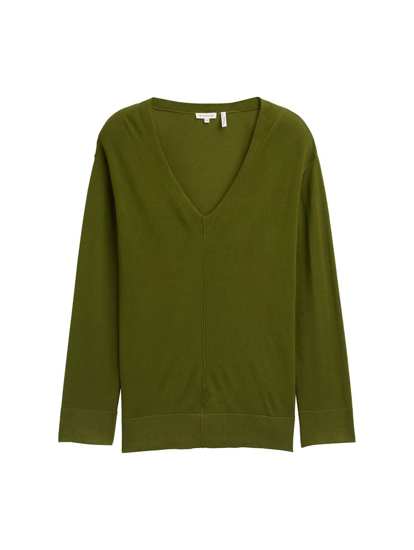 * Trui met losse pasvorm, V-hals, geribde zoom en sierstiksels op de voorkant
