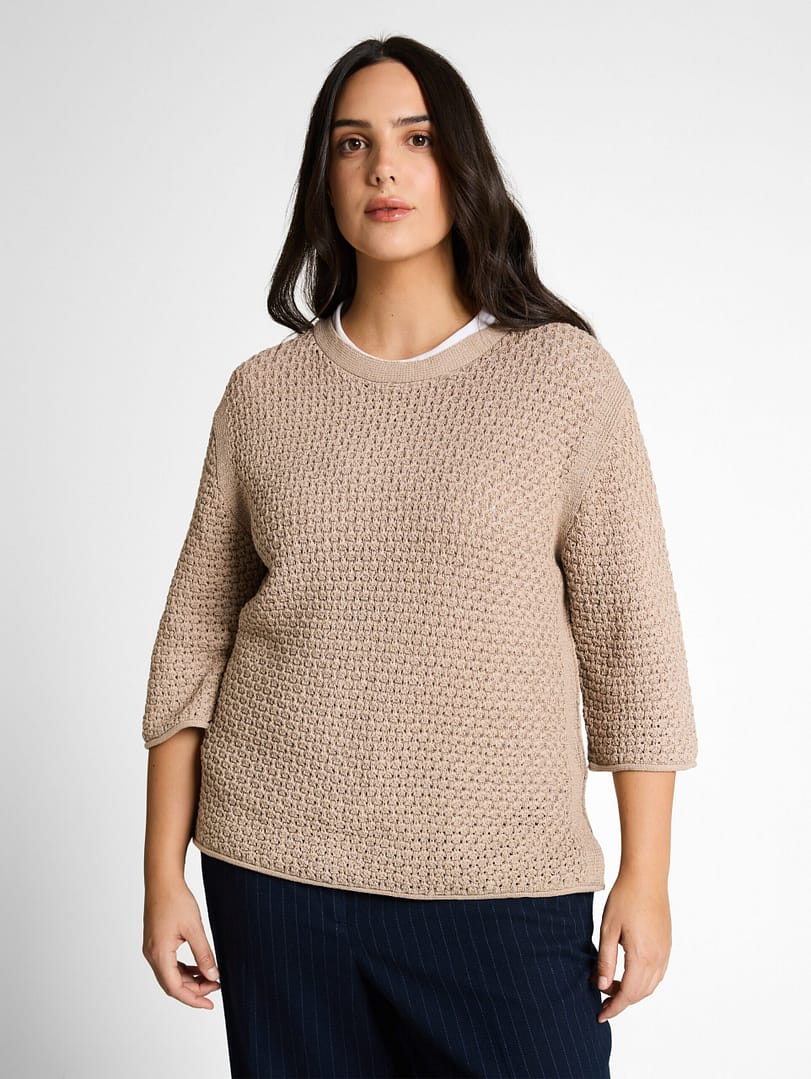 Losvallende trui met gaatjespatroon, 3/4-mouwen en zijsplitten