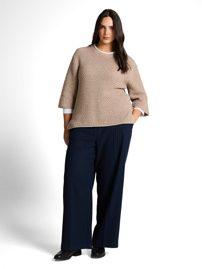 Plus Size – loose fit knitted jumper with eyelet pattern
