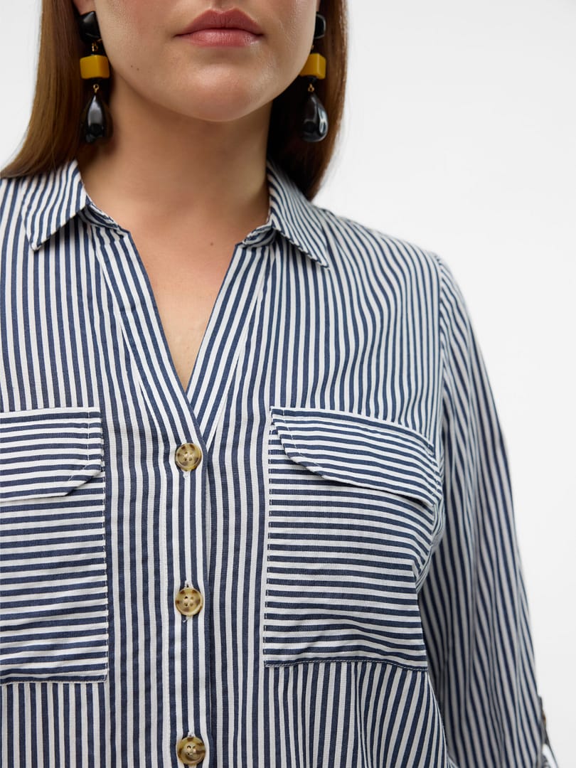 Deze blouse is een chique en veelzijdige toevoeging aan je garderobe, aangezien je hem op zichzelf of open over een simpele top kunt dragen. Combineer het met klassieke jeans en een simpel T-shirt voor een gave, alledaagse look of draag het met een broek en hoge hakken.