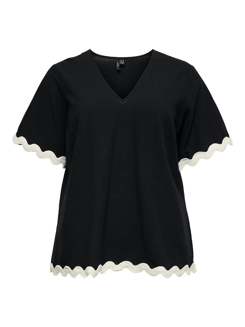 VMCJENNA S/S V-NECK TOP WVN BTQ GA CUR