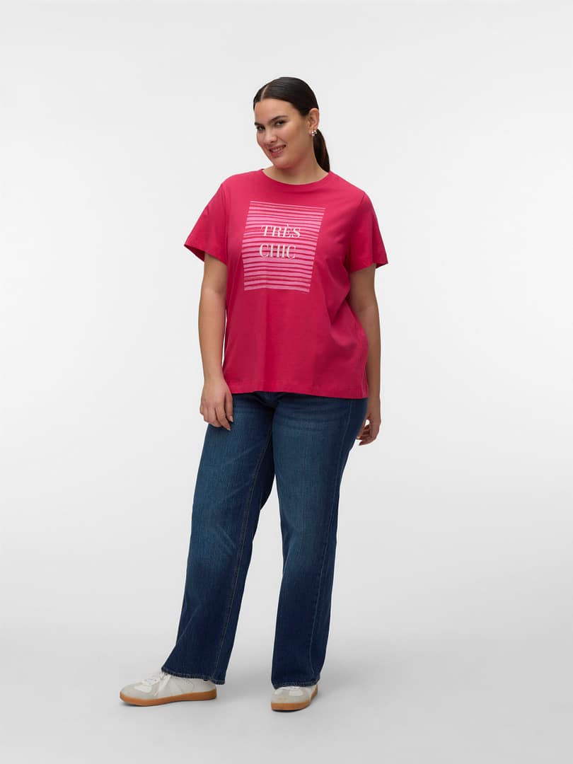 Draag bij twijfel een T-shirt! Je kunt nooit fout gaan met een T-shirt – een perfecte keuze voor een coole en tijdloze look. Draag dit T-shirt met een mooie boyfriend jeans en voeg een paar chunky sneakers toe voor een urban city look.